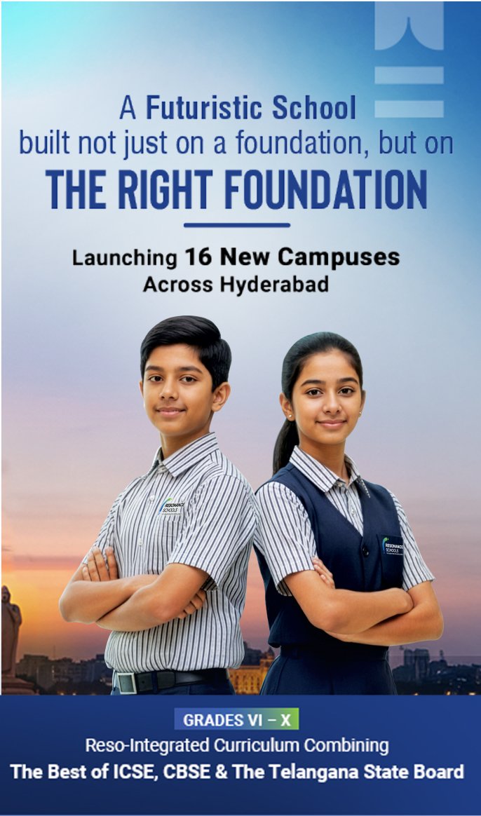 Resonance Hyderabad began its journey in 2018 with a strong focus on junior colleges for IIT-JEE and NEET preparation, steadily expanding into school-integrated foundation programs and advanced e-learning platforms. This natural progression led to the launch of Resonance Schools at the Patancheru Residential Campus envisioned as holistic learning ecosystems that blend board excellence, competitive exam foundations, innovation-driven pedagogy, technology integration, values, wellbeing, sports, and future-ready skills, and now extending this vision through 16 campuses across Hyderabad, nurturing confident, capable learners prepared for lifelong success and leadership.