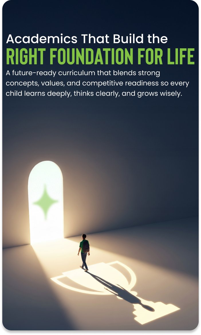 Carefully sequenced topics, graded difficulty levels, and regular reinforcement help students stay ahead without feeling overloaded. The curriculum is aligned to support school exams, Olympiads, NTSE, and future foundation-level prep for IIT-JEE and NEET, giving students both academic stability and long-term direction.