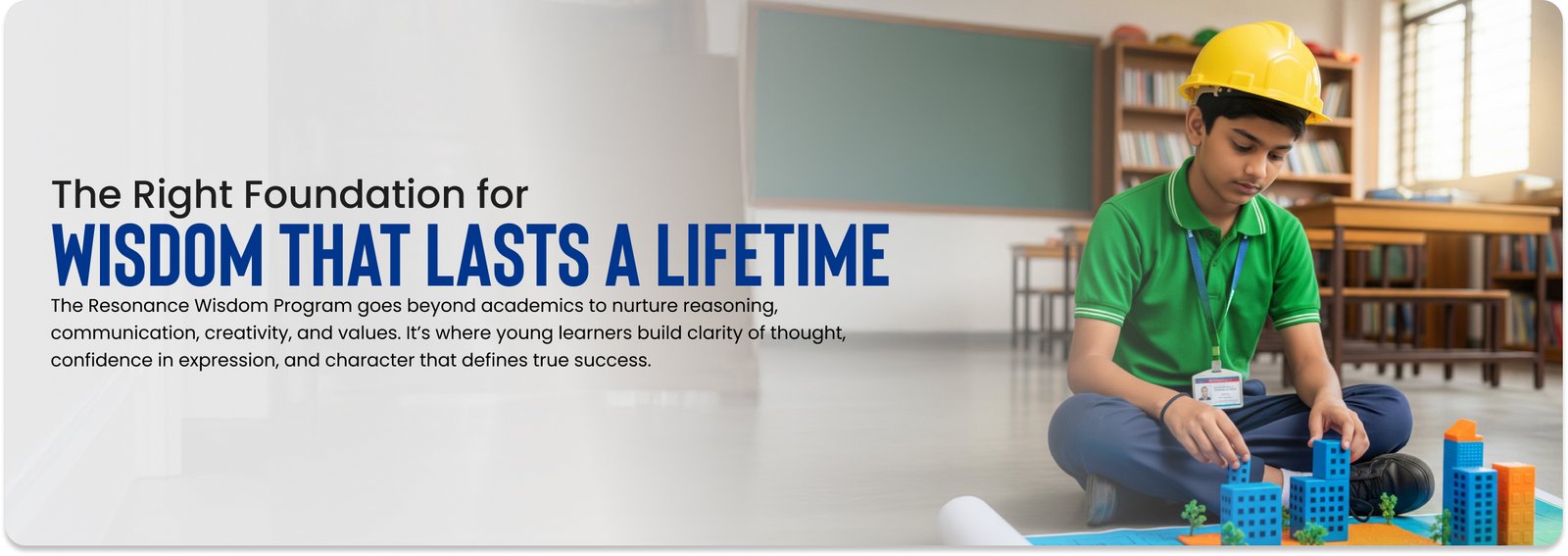 The Wisdom Program at Resonance Schools is designed to provide students with a balanced, value-based, and future-ready education. It strengthens academic foundations while nurturing communication, creativity, character, and confidence, essential for success in both studies and life.